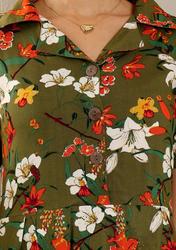 Floral Cotton Notch Collared Dress. (Brown)