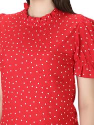 Rayon Floral Bell Sleeved Top With Ruffle Neckline (Red)