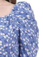Rayon Floral Bell Sleeved Top With Ruffle Neckline (Sky Blue)