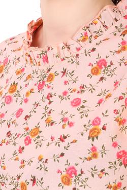 Floral Printed Cotton Ruffle Sleeve Top (Peach)