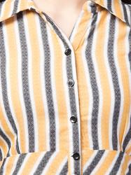 Striped Cotton Cap Sleeve Peplum Top. (Mustard)