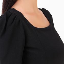 Puffed Sleeves Peplum Top. (Black)